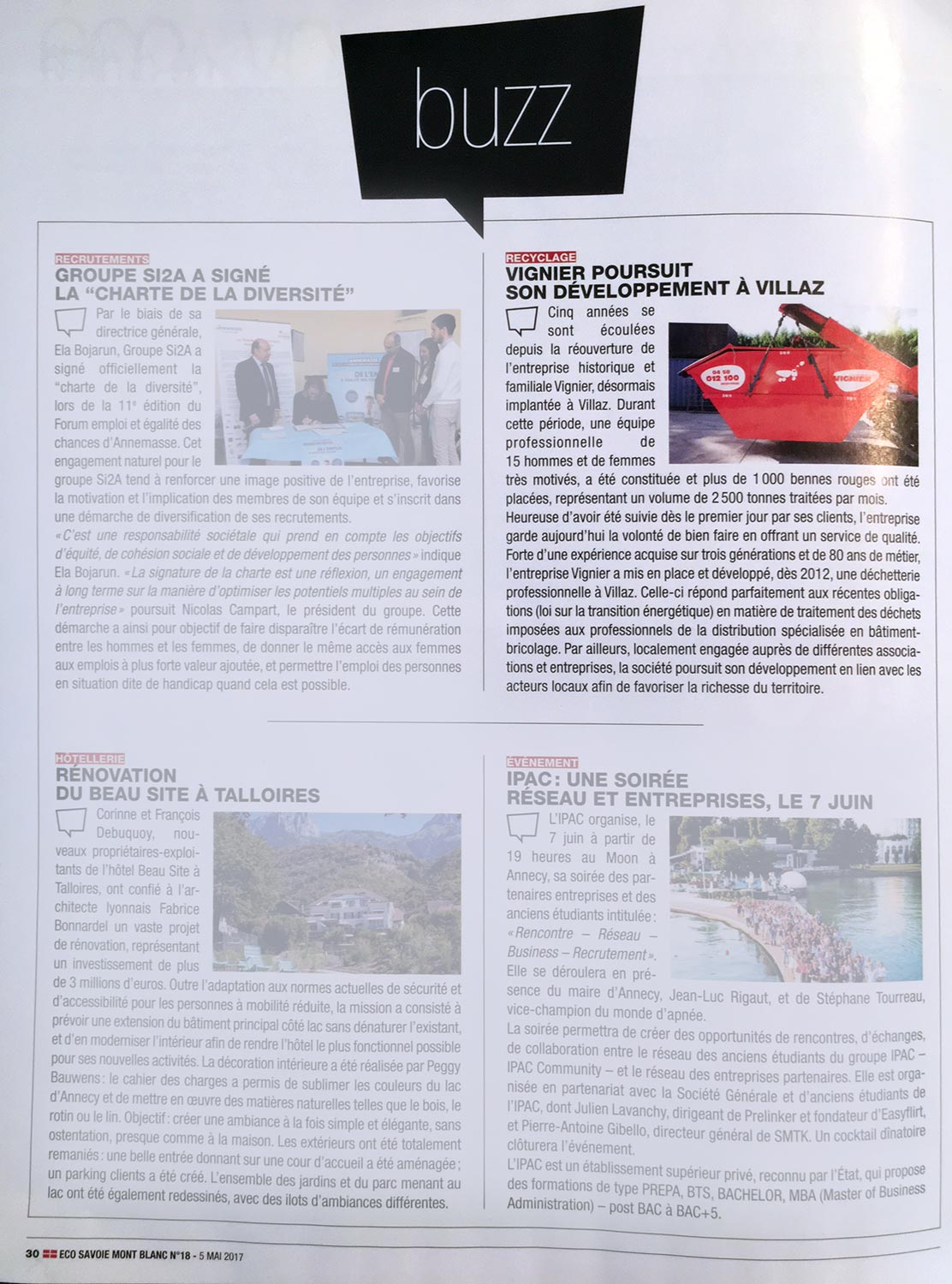Parution presse, petit article consacré à la déchèterie Vignier dans l'Eco des Savoie